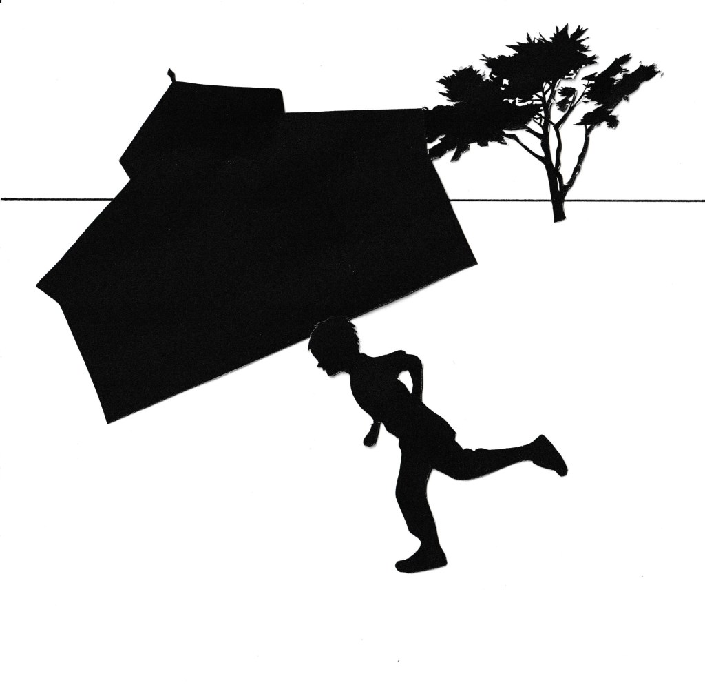 When the figure is smaller than the other elements. It makes me wonder what he is doing. It makes my eye travel across the page with him and adds a sense of intrigue. The figure may seem less significant and this gives the building and the tree more of an impression of grandeur and therefore they become overpowering in the image. In some instances, such as test 12, the figure would need to be a lot smaller, so that he would appear to be very far in the distance on the horizon. It was difficult, however, to print him so small, perhaps a tiny drawn figure would have worked better in this instance. When the figure is smaller, it looks as though he is perhaps just jogging or playing through the land around and pass the house. In contrast, when the figure is large as in ‘test 4’, he almost looks like he is running away from something. The large size of him seems almost to create a sense of urgency. Although, of course, he could simply be running for fun as well.